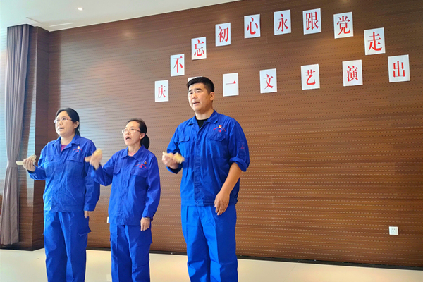 合唱队伍整齐,精神饱满,一曲《没有共产党就没有新中国》拉开了整场演出的序幕。整场演出节目形式多样,精彩纷呈,有歌曲、舞蹈、快板、诗朗诵、三句半等。“吃水不忘挖井人,幸福全靠共产党”,快板《点赞建党99年》用欢快的节奏祝福了党的生日,赞美了党的伟大成就。手捧入党志愿书,分享入党的故事,以入党时的真诚和激情,进一步明确了初心使命。“先进人物故事汇”,通过讲述身边先进人物石国新、高飞、杨壮立足岗位、吃苦耐劳的故事,激励大家在今后的工作和生活中要学先进、赶先进、当先进。“我骄傲,我自豪,我们共同拥有一个闪光的名字—中国共产党党员”,诗歌朗诵《我是共产党员》,声音铿锵有力,响彻现场,让所有人都深受感染。独唱《金瓶似的小山》,深情地唱出了人民群众纵情歌颂伟大领袖毛泽东的纯朴情感。三句半《长征精神代代传》赞美了红军不怕困难、勇敢顽强的革命精神,表达了继承和发扬长征精神的决心和信心。《我和我的祖国》的音乐声响起时,演员们用最美的肢体语言,诠释了对伟大祖国的无比热爱,也为整场演出画上了圆满的句号。