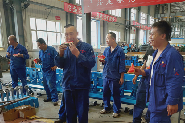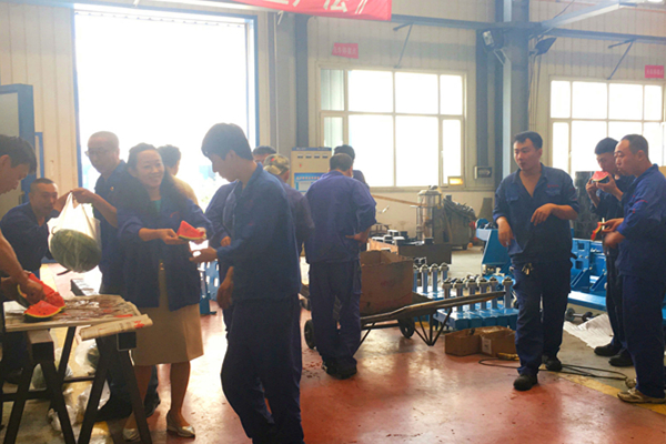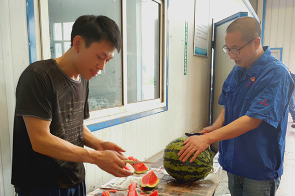 炎炎夏日,骄阳似火,一线职工依然坚守在生产一线。为了让一线职工平安度夏,近日,玻机公司中层干部自愿捐款开展送清凉活动,助力职工战高温斗酷暑。中层干部代表将西瓜、冰糕送到生产车间,让一线职工在挥汗如雨的工作现场就能消暑解渴。送清凉活动受到了一线职工们的广泛好评。看似平常的西瓜、冰糕,不仅体现了公司中层干部密切联系职工的工作作风,而且让一线职工感受到了公司的滴滴关爱。