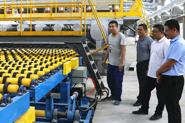 袁小平一行参观了金宏阳公司新建的一窑二线玻璃引板的过程。该线的冷端部分是由玻机公司于2019年9月承接,公司上下全力克服新冠疫情导致的工期延误,克服众多技术难题,加强产品质检力度,抢抓时间安装设备,历时11个月圆满完成。参观的过程中,玻机公司相关负责人对该项目在设计、质量、安装等情况进行了总结与记录。