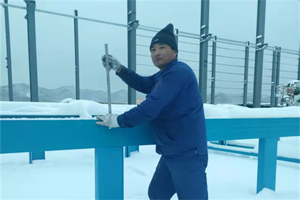 2021年9月开始,玻机公司赵烁、潘洋、李志磊三名员工带领团队在本溪玉晶玻璃有限公司安装退火窑及冷端机械设备,因工期紧迫,现场人员不分昼夜加班工作。11月初,恰逢立冬又突降大雪,给本就低温的施工现场带来了更严峻的挑战。明月照积雪,朔风劲且哀。他们在白天温度都低至零下的环境下,夜晚仍要坚持施工赶工期,大雪、降温、寒风……现场的施工难度在不断地增加。他们踩着厚达十几厘米的积雪,逆着呼啸的北风安装设备。他们这种与严寒抗争、与时间赛跑的工作精神和品质值得我们敬佩和学习。为优秀的华勘人喝彩!