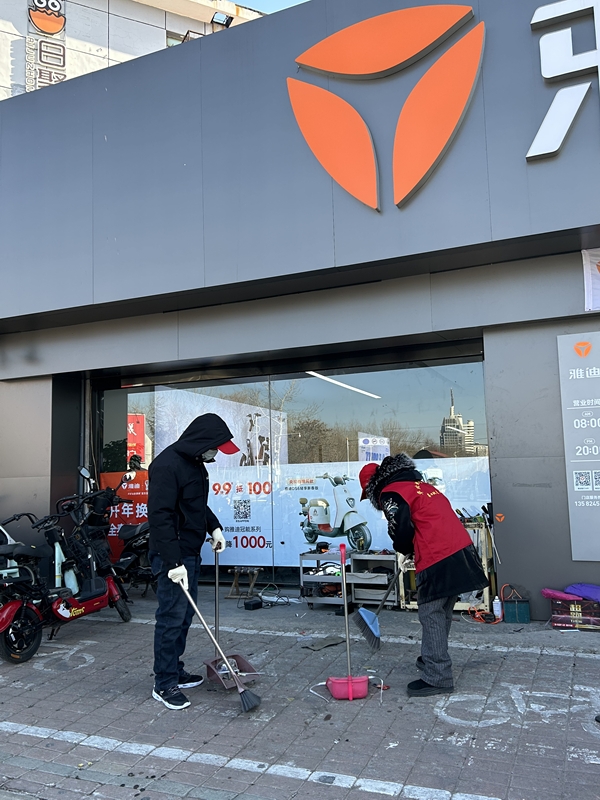 在大家的齐心协力下,经过两个多小时的奋战,沿街的辅路、商铺门前空地及绿化带被彻底清扫干净。