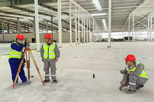 到达安装现场的第一天,水泥地面满是水泥残渣和泥水。他们只能一边打扫,一边放线。对于新打的水泥地面,甲方每天都需要通过养江浇水的方式延长地面的使用寿命。因此,他们三人第二天来到现场,路面又是满地泥水,他们只能再次边打扫、边放线。这样的日子连续了七天,面对紧张的工期,他们没有怨言,竭尽全力往前赶进度。