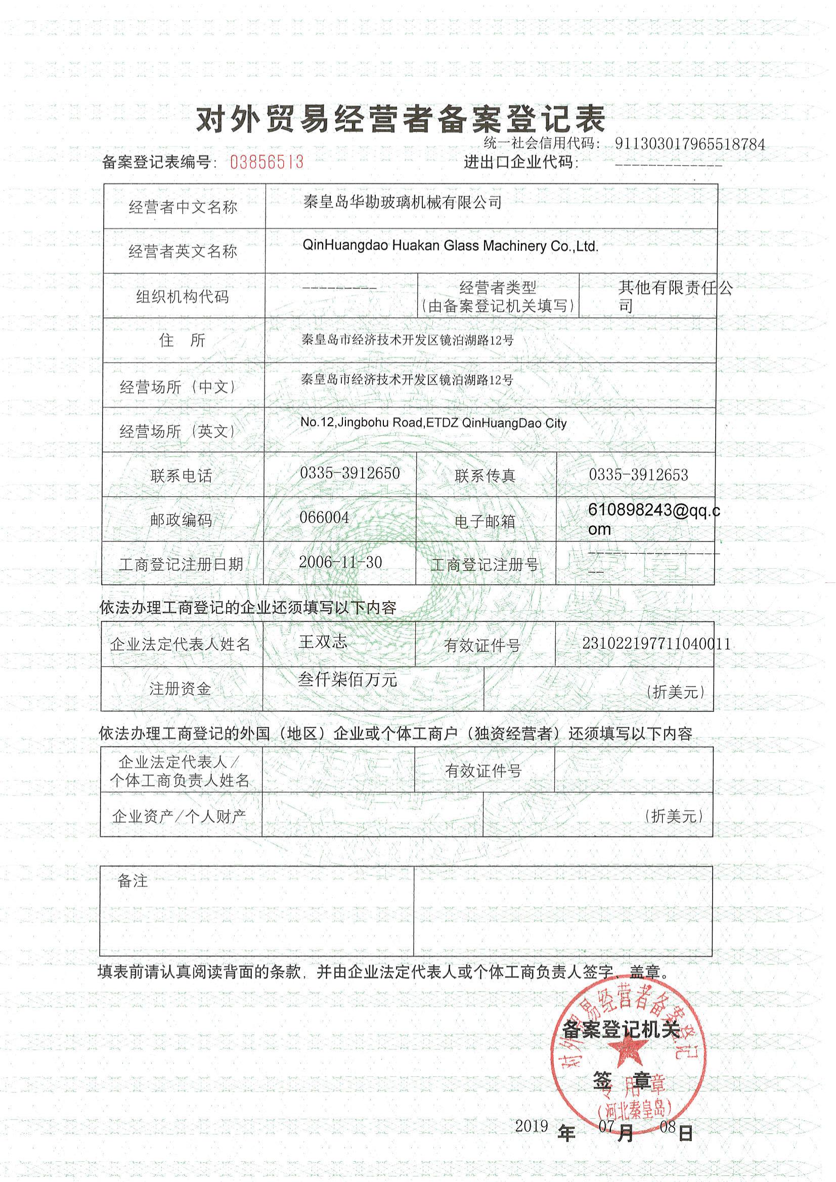 对外贸易经营者备案登记表