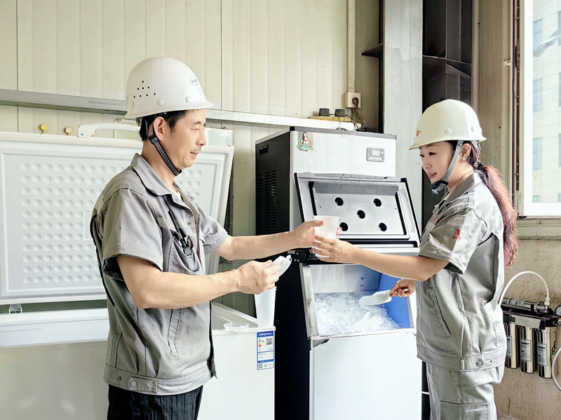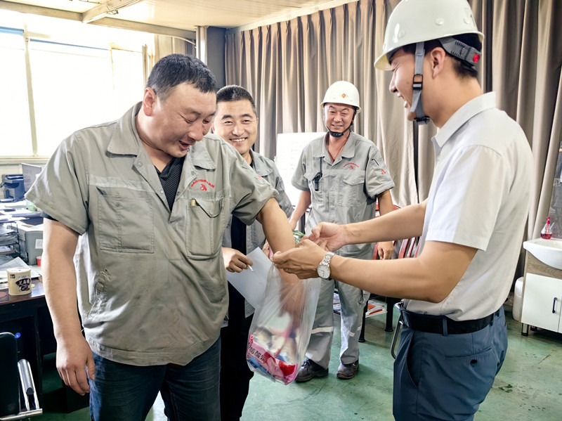 总经理赵卫朋在车间配备一台全自动制冰机,用以改善夏季车间生产条件,这赢得了职工们的“大拇指”。他安排专人提前将冰块装入密封塑料杯,并保存在冰柜中,以便发放到一线职工手中。